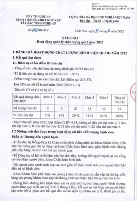 Hoạt động bệnh viện, Thông tin chung, Tin tức KẾT QUẢ TỰ KIỂM TRA, ĐÁNH GIÁ CHẤT LƯỢNG BỆNH VIỆN QUÝ III/2022 Đăng ngày 1 Tháng Mười Một, 202227 Tháng Mười Hai, 2022 | người đăng Đàm Thuỷ | 321 lượt xem Bình chọn bài viết ..